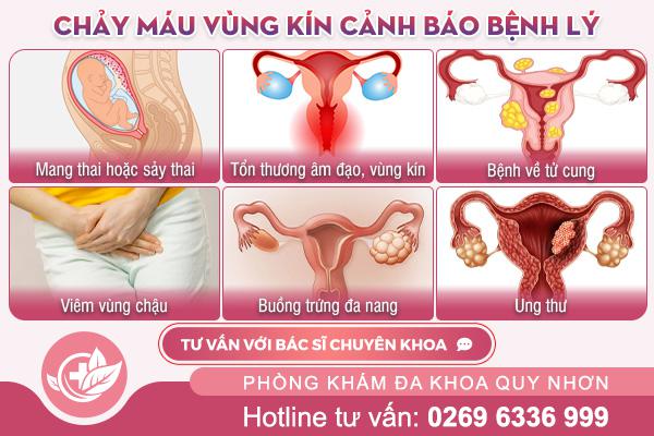 Tình trạng chảy máu vùng kín nhưng không phải kinh nguyệt nếu xảy ra thường xuyên được xem là dấu hiệu cảnh báo những bệnh lý mà chị em có thể gặp sau đây: